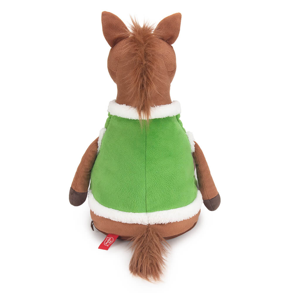 Оригинальная новогодняя текстильная упаковка для сладостей вместимостью до 1200 г. Мягкая игрушка символ года 2026 лошадь Грег.